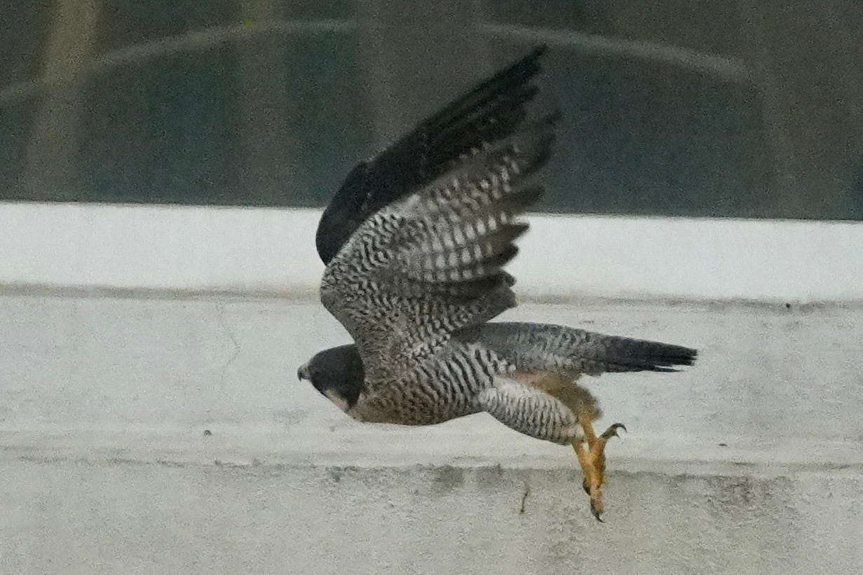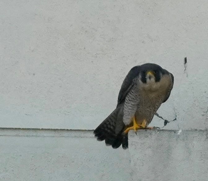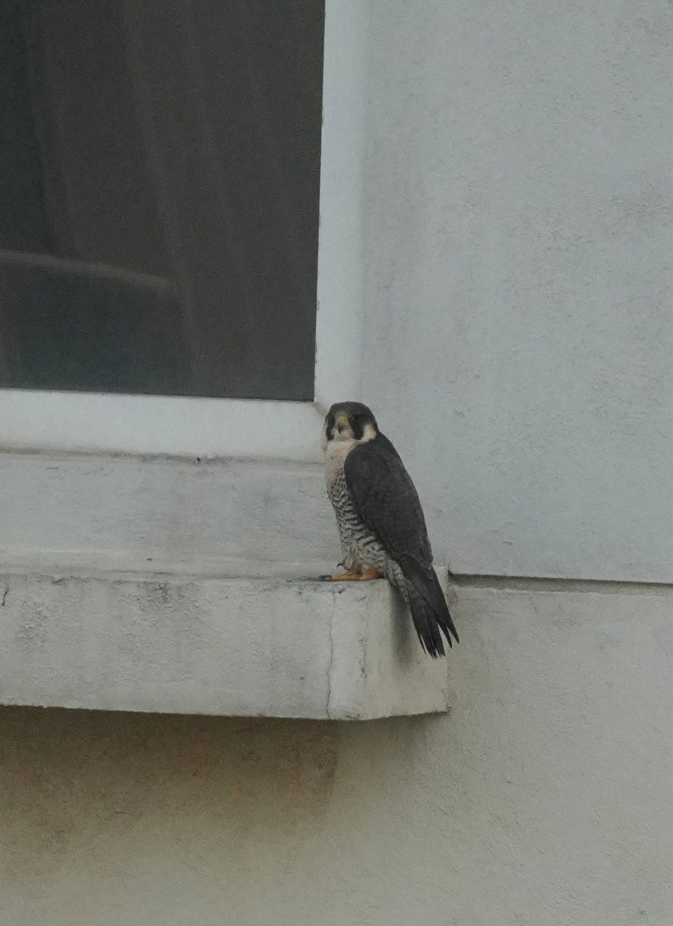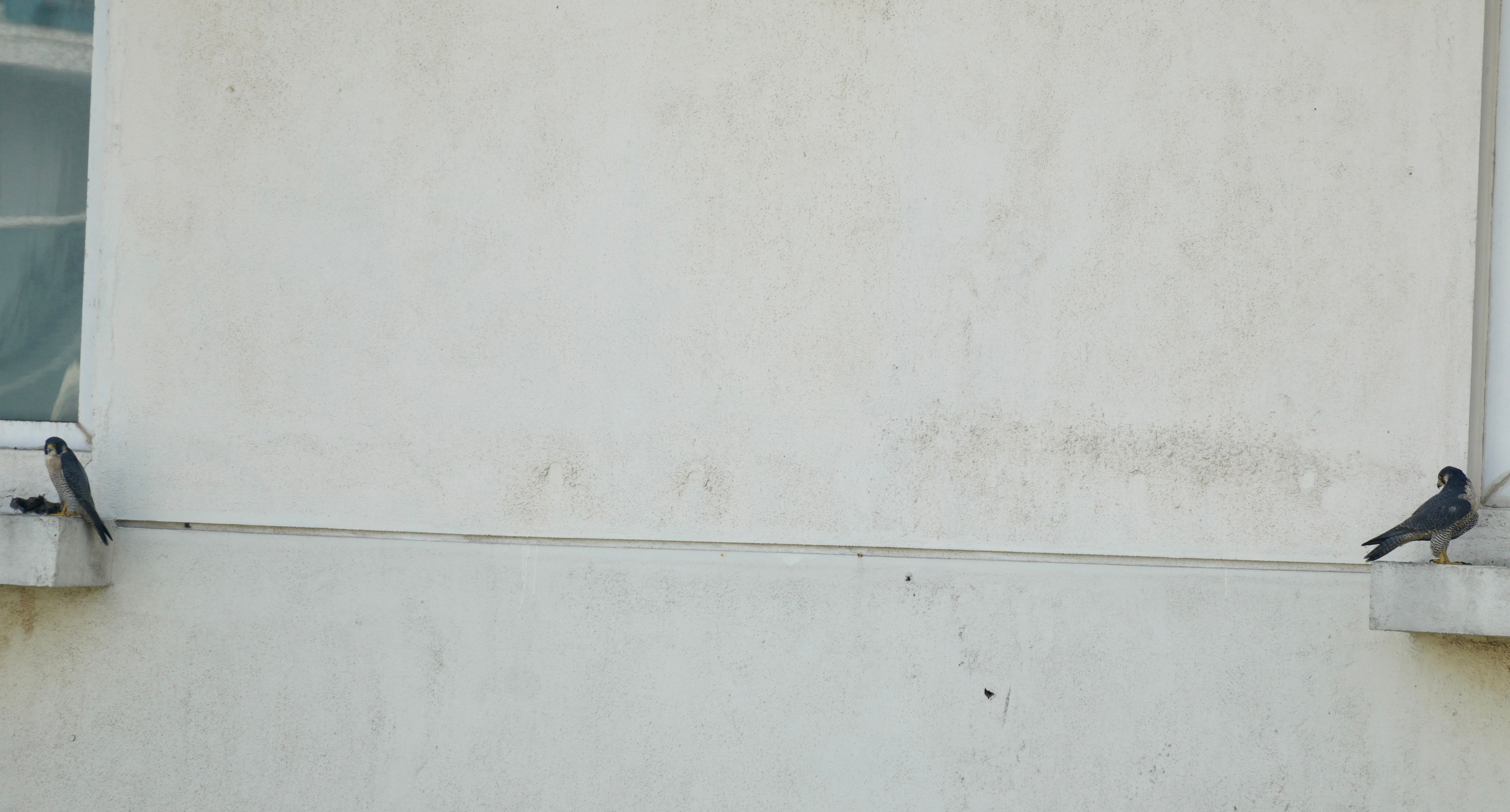 Peregrines are whispering death. No neighbourhood bullying like the crows, no aggression - but oh what respect they get! As soon as they come, the other ledges empty quickly, as the pigeons and crows leave in a hurry.